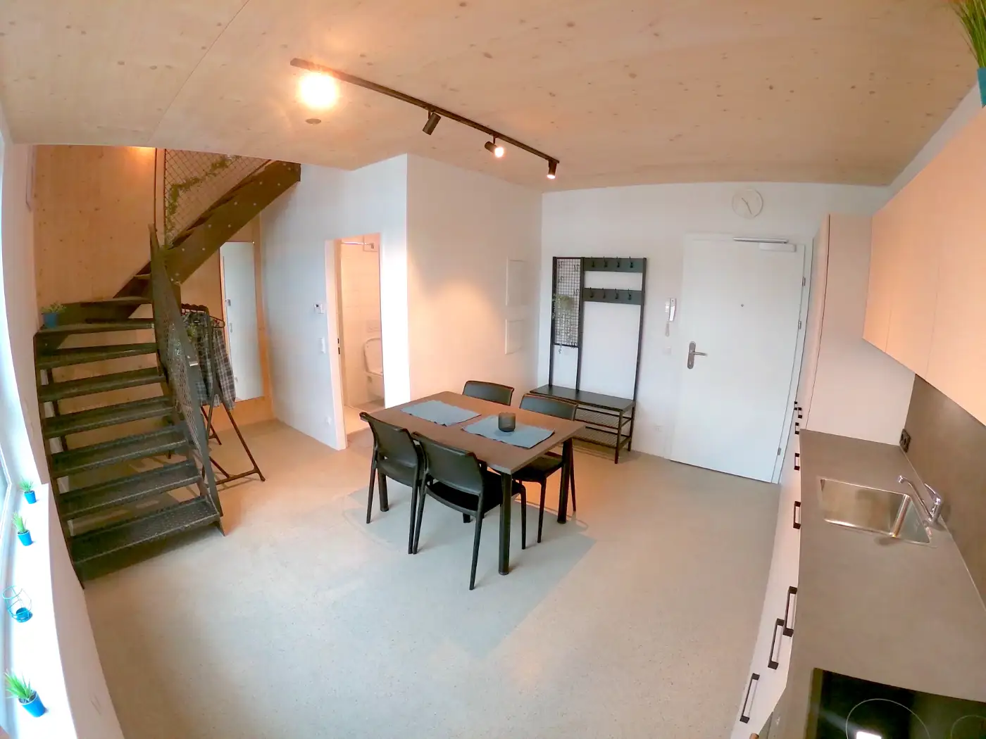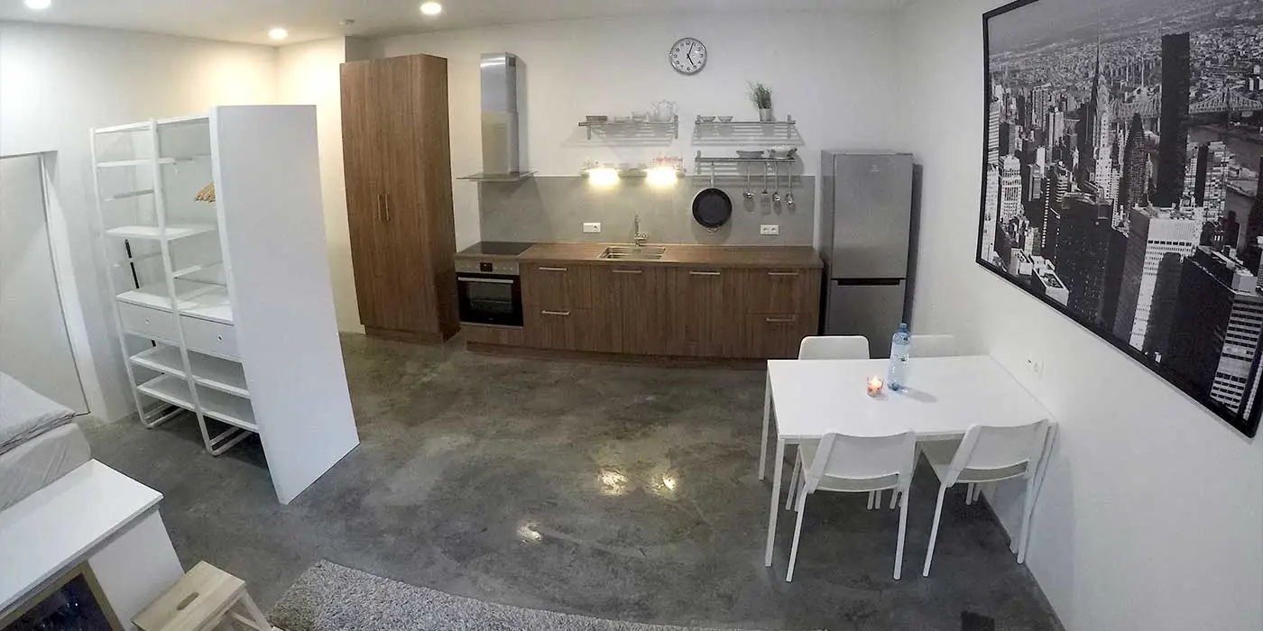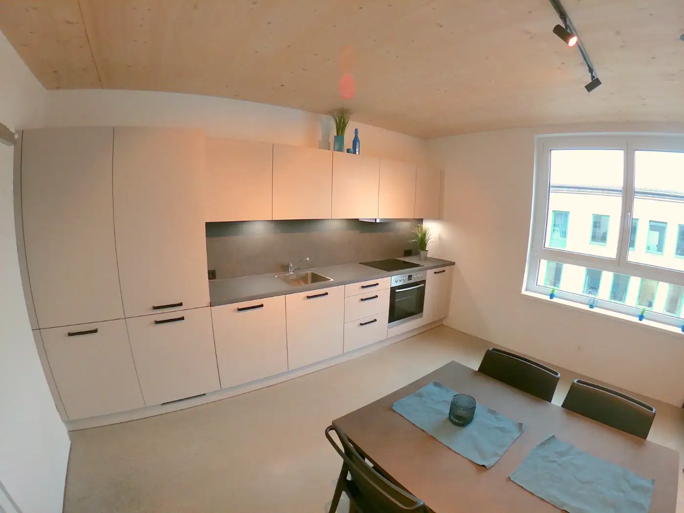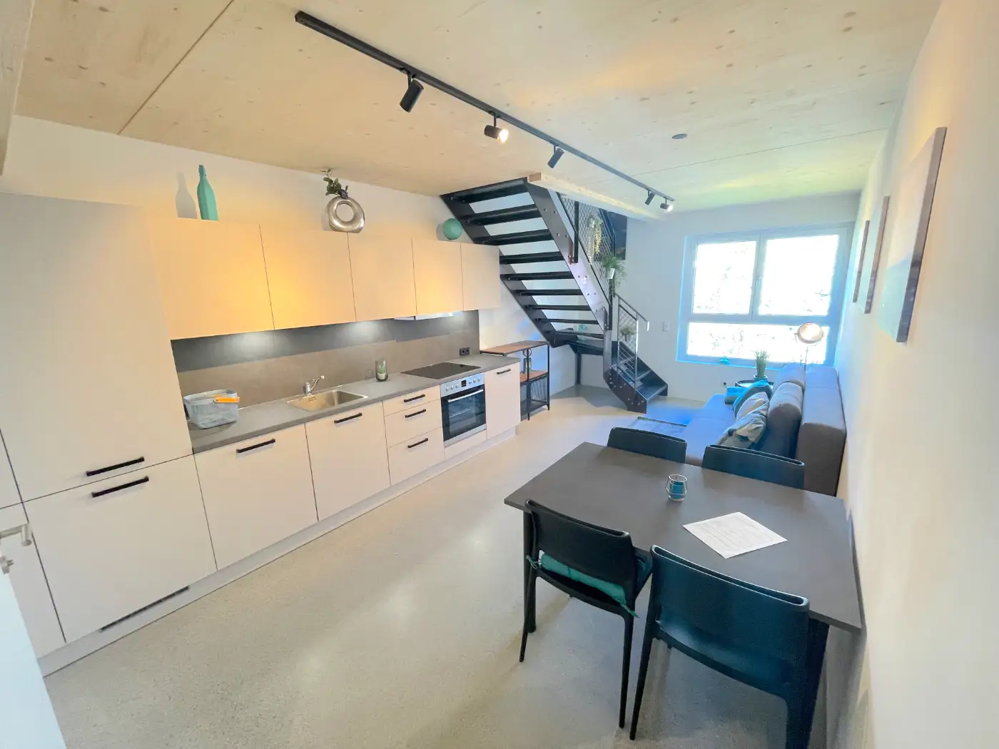 Alle miniLOFT´s sind möbliert und voll ausgestattet. Die Küchen mit Kochfeld, Kühlschrank, Geschirrspüler, Espressomaschine und Backofen. Ein großzügiger Essbereich steht ebenfalls bereit.