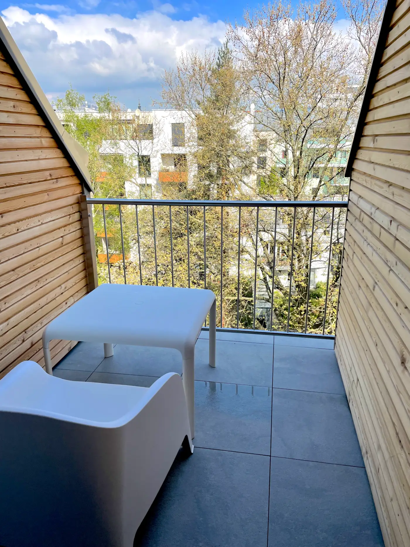 Die Apartments sind mit modernster Technik ausgestattet wie Schallschutzfenster, Smart TV und WLAN. Zudem gibt es teilw. Wohnraumlüftung, Fussbodenheizung, sowie großzügige Dachterrassen und Balkone mit herrlichem Grünblick.